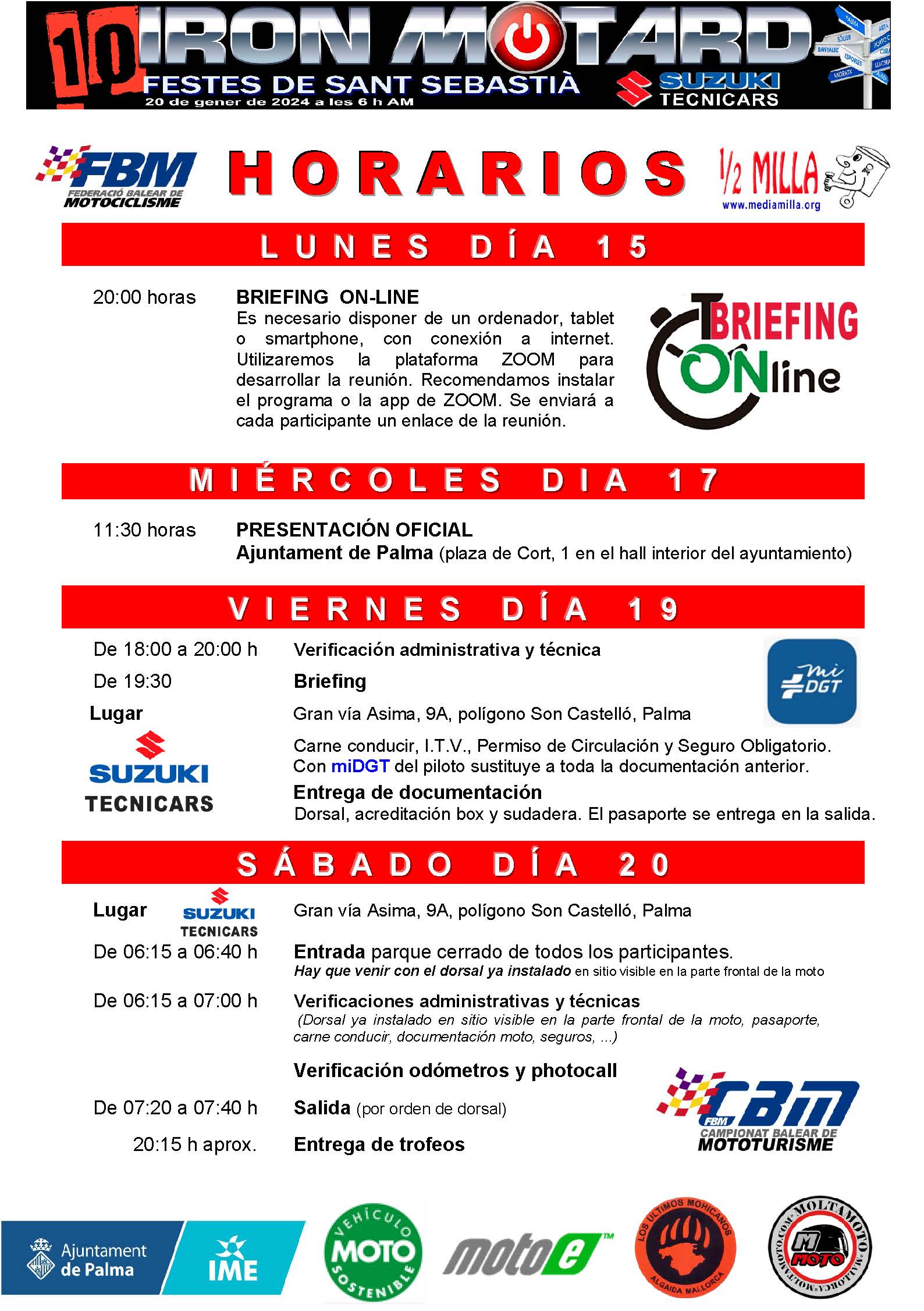 HORARIOS - 10º IRON MOTARD FESTES DE SANT SEBASTIÀ 2024