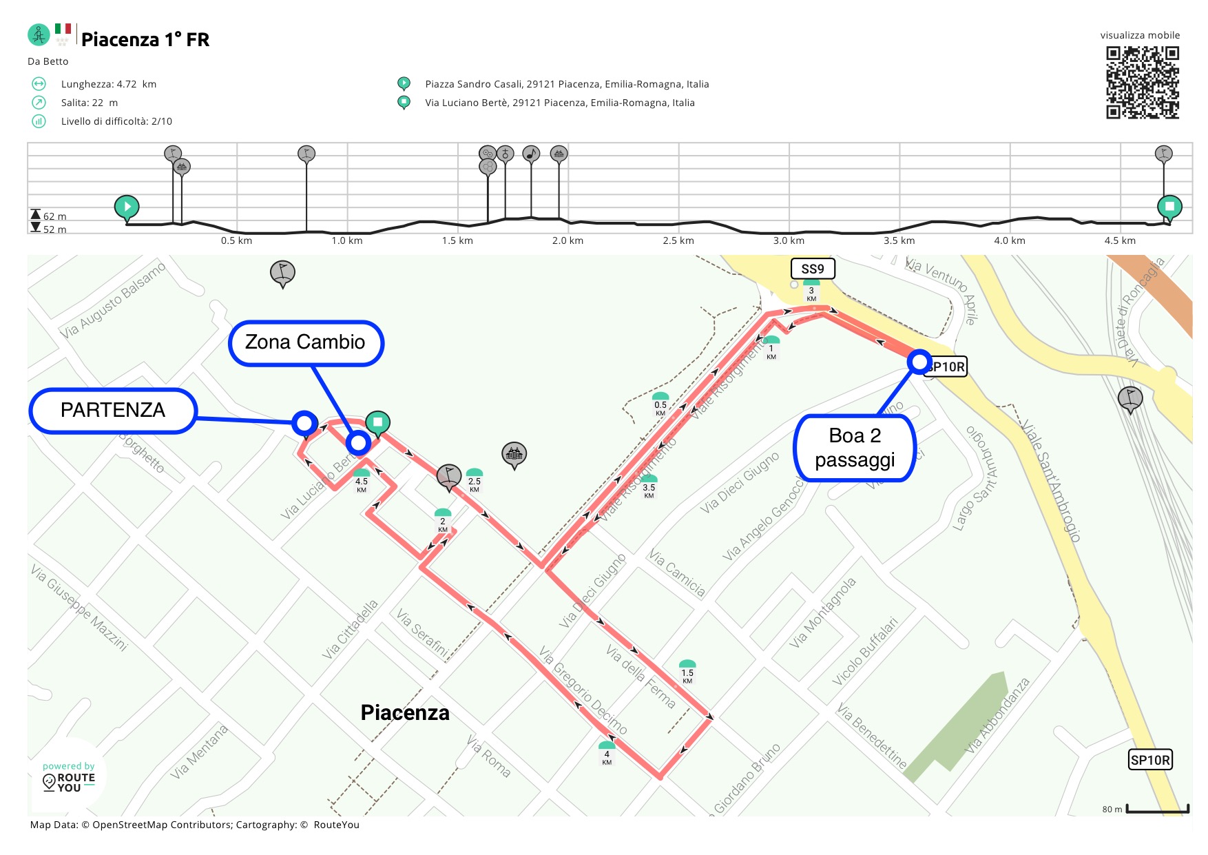1° FRAZIONE CORSA: 5KM, circuito cittadino su asfalto 2 giri (MAPPA)
