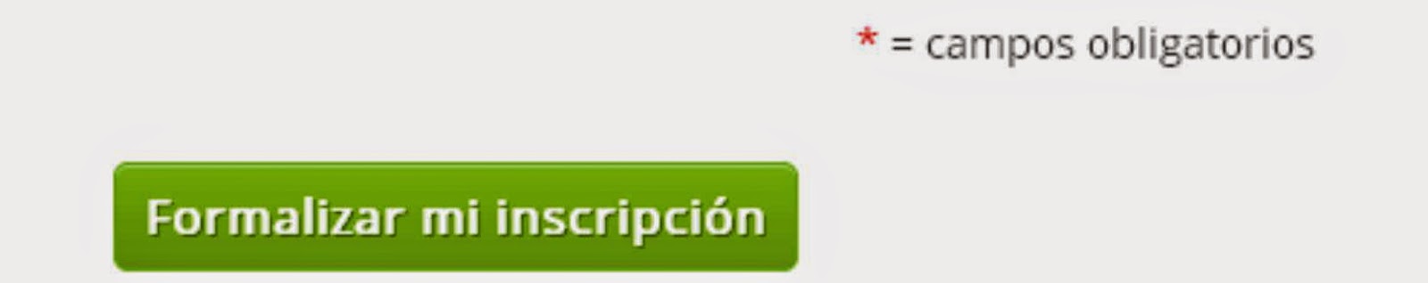 • Una vez hayas pinchado en aceptar verás todos tus datos con los que has realizado la inscripción y deberás de confirmar pinchando en la pestaña verde “Formalizar mi inscripción