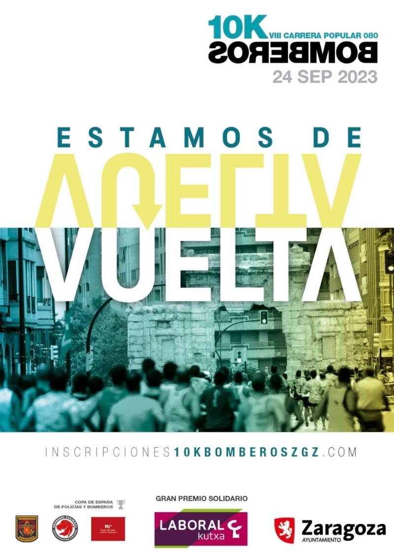 VIII CARRERA POPULAR 10K BOMBEROS ZARAGOZA 24/09/2023 9:30 - Inscripciones Online a través de www.10kbomberoszgz.com - Presencial en cualquier sucursal de Caja Laboral Kutxa