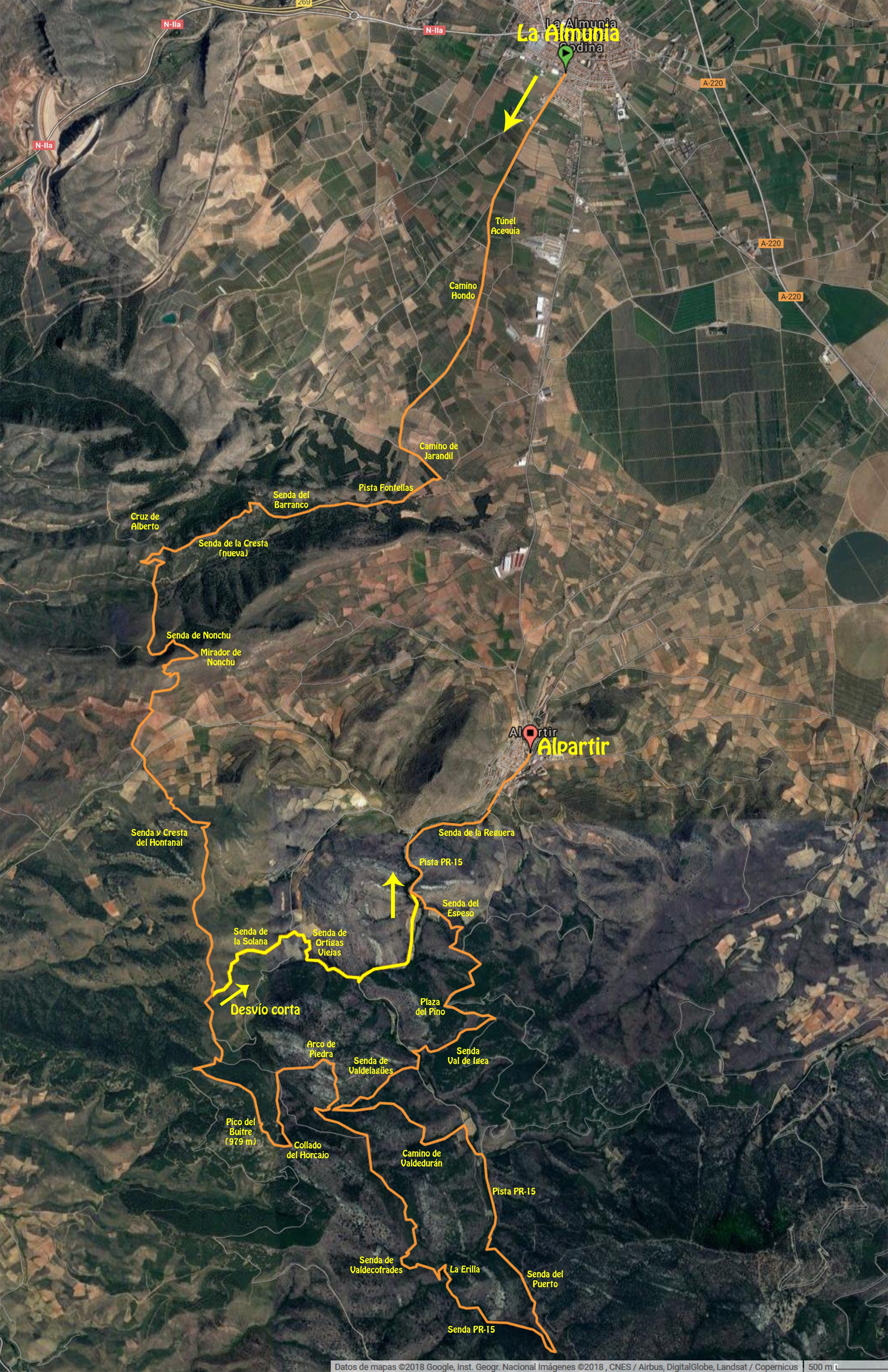 ¿Qué supone este cambio? Por un lado podemos enseñaros el Valle de Algairén a los que todavía no tenéis la suerte de conocerlo y por otro lado nos evitamos el último tramo de pista de las ediciones anteriores; Alpartir está al pie de este Valle y tenemos senda practicamente hasta la meta.